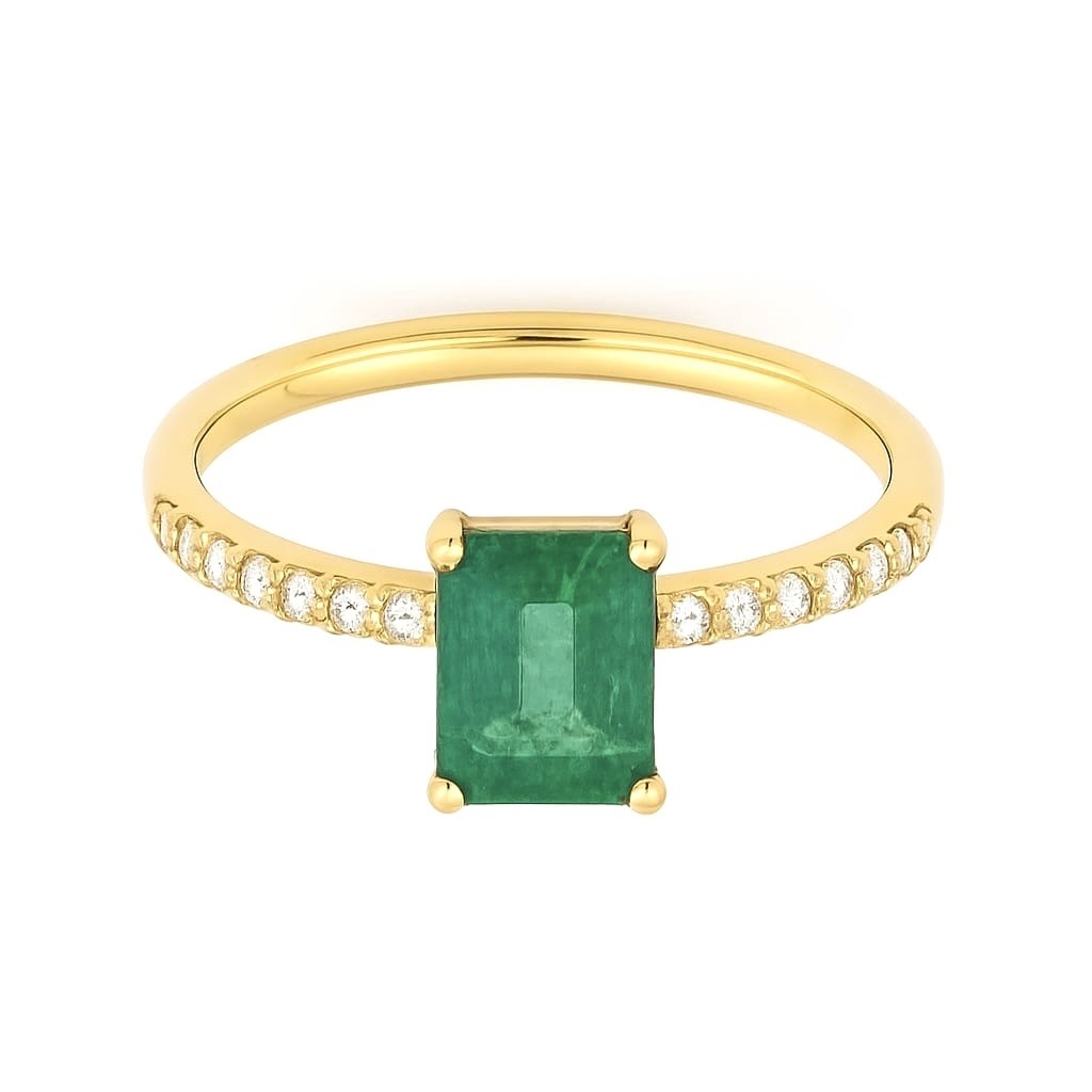 Дамски пръстен със смарагд и 18 карата жълто злато