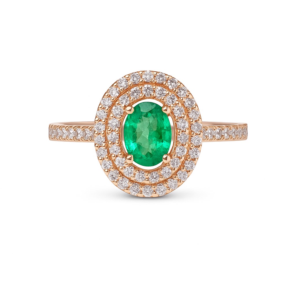 Дамски пръстен от 18 карата злато със смарагд и диаманти