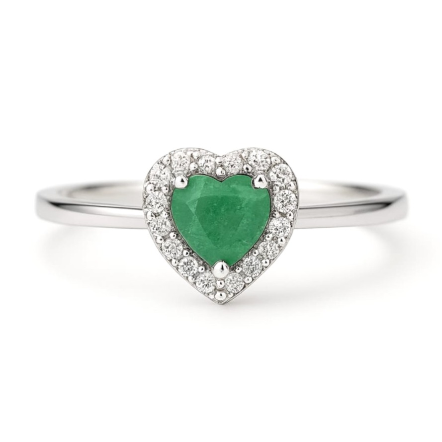 Пръстен със смарагд 0,63 к. и диаманти от бяло злато 14 к.